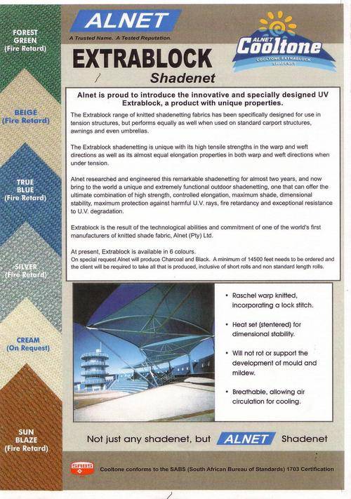 -- You won't find a better quality shadecloth than ALNET Extrablock anywhere on earth --
