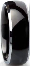 This Tungsten Carbide ring is 6mm wide, comfort fit, domed top, black plated and tungsten color beveled edges