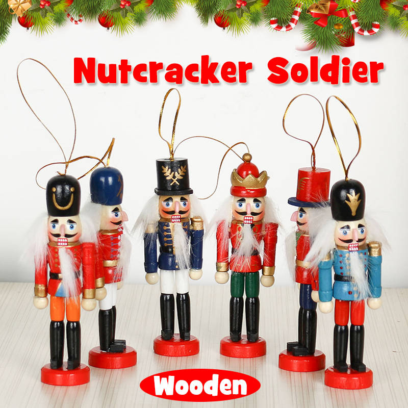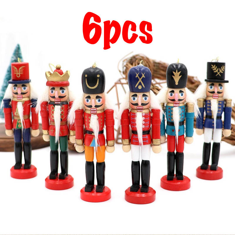 6Pcs 12cm Wooden Nutcracker Soldier Desktop Decorations Collections Birthday Gift for Friends