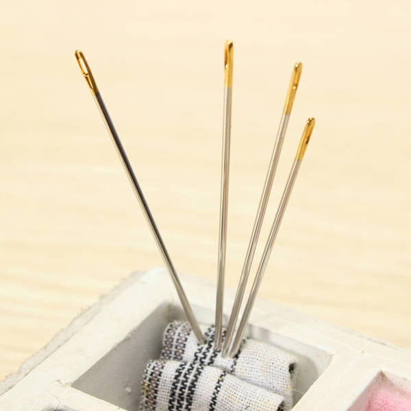 Featrue: Great for most sewing works: Embroidery, Darning, Quilting, Crafting etc. Suitable for leather, denim, silk, canvas, cotton The 16pcs needles length is between about 4-5cm