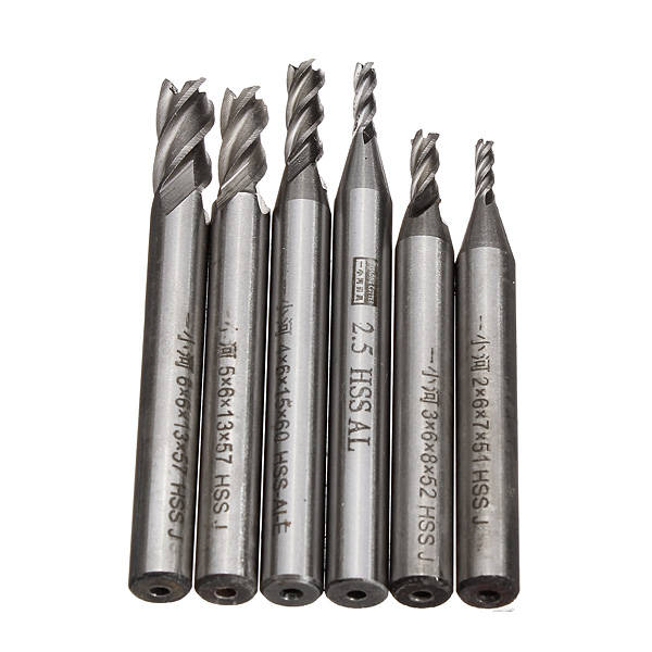 6pcs 2-6mm 4 Flute Milling Cutter HSS End Mills Engraving ToolsSpecification:Material: 4143 High Speed Steel