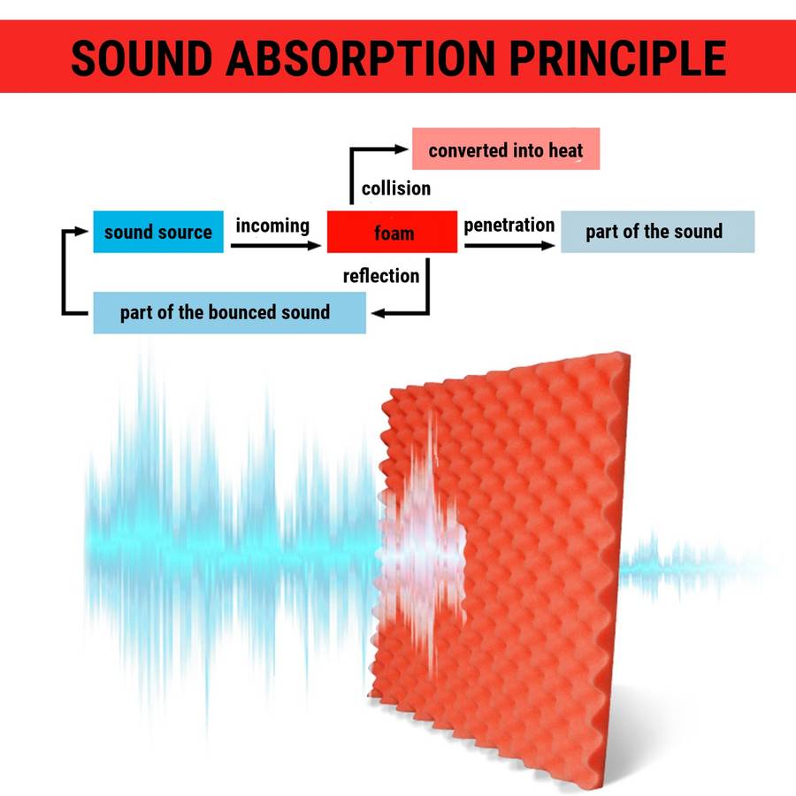 Effective sound treatment foam tile: Sound proofing, sound absorption foam (especial high and medium frequencies), sound eliminating and unwanted reverb controlling foam, reverberation counteracting foam panel