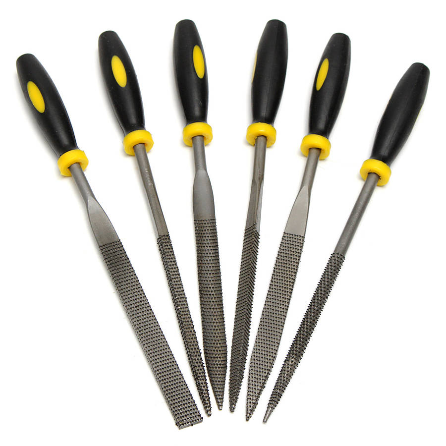 Package weight: 0.21 kg Specifications: Name: 6pcs Mini Files Set Metal Filing Rasp Needle File Wood Tools Hand Woodworking Material: Metal Color: Black & Yellow Length: 180mm Features: -A variety of shapes, wide use, high hardness, strong and durable. -Comfortable, precise and uniform grip, clean teeth. -For the processing of mahogany wood and other hardwood category professional file. -May be used for other grinding wood cases. -Application:Used for the processing of hard wood, making model required. Package included: 6 x Needle Files More details: