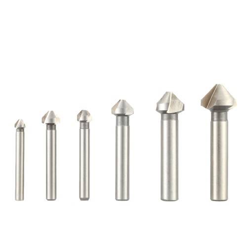 6pcs/set 90 Degrees Three Blade High-speed Steel Round Shank Chamfer Countersink Set 3 Flute HSS4241 Chamfering Bit Set Professional Chamfering Cutter