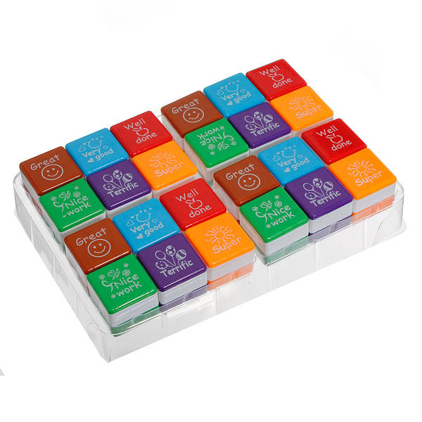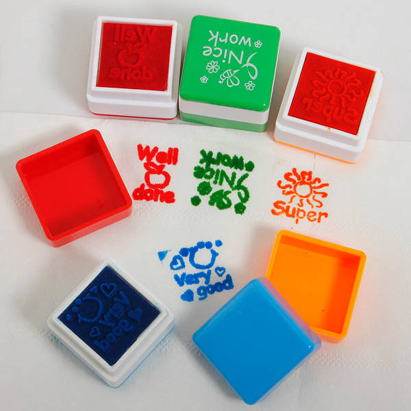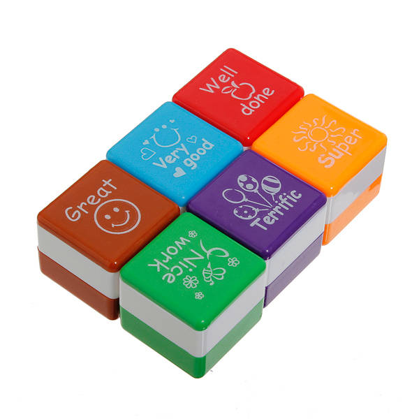 Description : 6Pcs Teacher Stamper Self Inking Reward Stamps Motivation Sticker A group of six colors, six kinds of patterns, don't need another with inkpad,long service life It Is suited to teachers and parents to encourage children. Encourage language include: well done,great,super,very good,nice work,terrific Specification : Material: Outer is plastic Size: APP 2.5cm x 2.5cm x 2.3cm Package includes : 6 x Reward Stamps Motivation Sticker Stampers Detail Pictures :