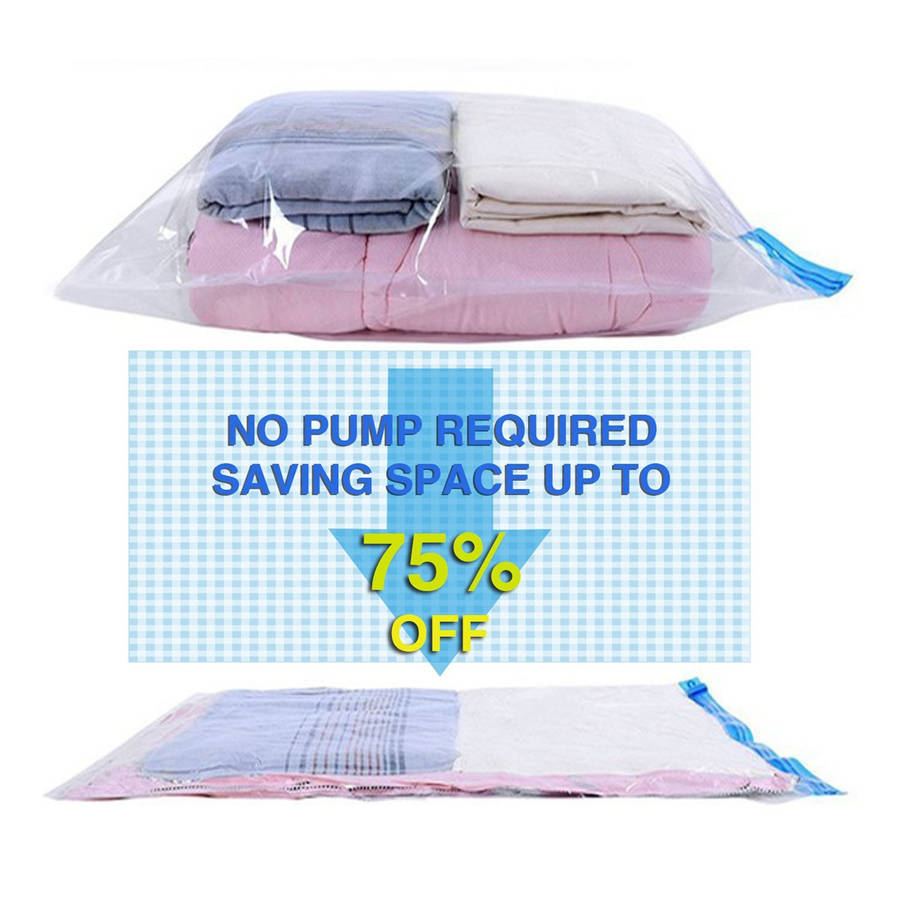 Perfect for condensing shirts, pants, sweaters, jackets, blankets, pillows, towels, shoes and more. Increase storage space by 300% !