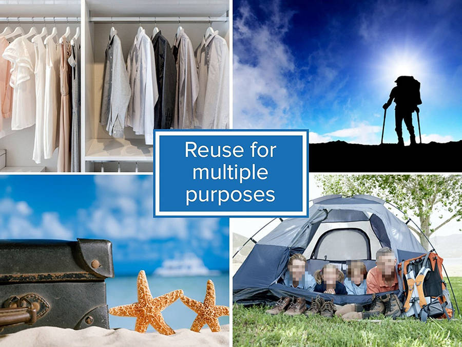 Not only travel space bags will set save you space, they also protect your personal belongings from mold, mildew, dust, and bacteria and prevent dirt, bugs, odor, and moisture, string and chaos, perfect space bags for family, travel, camping, zombie attack and so on.