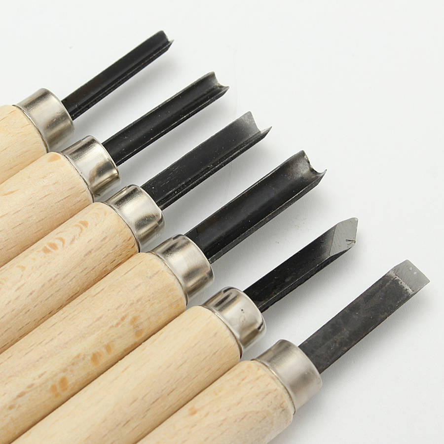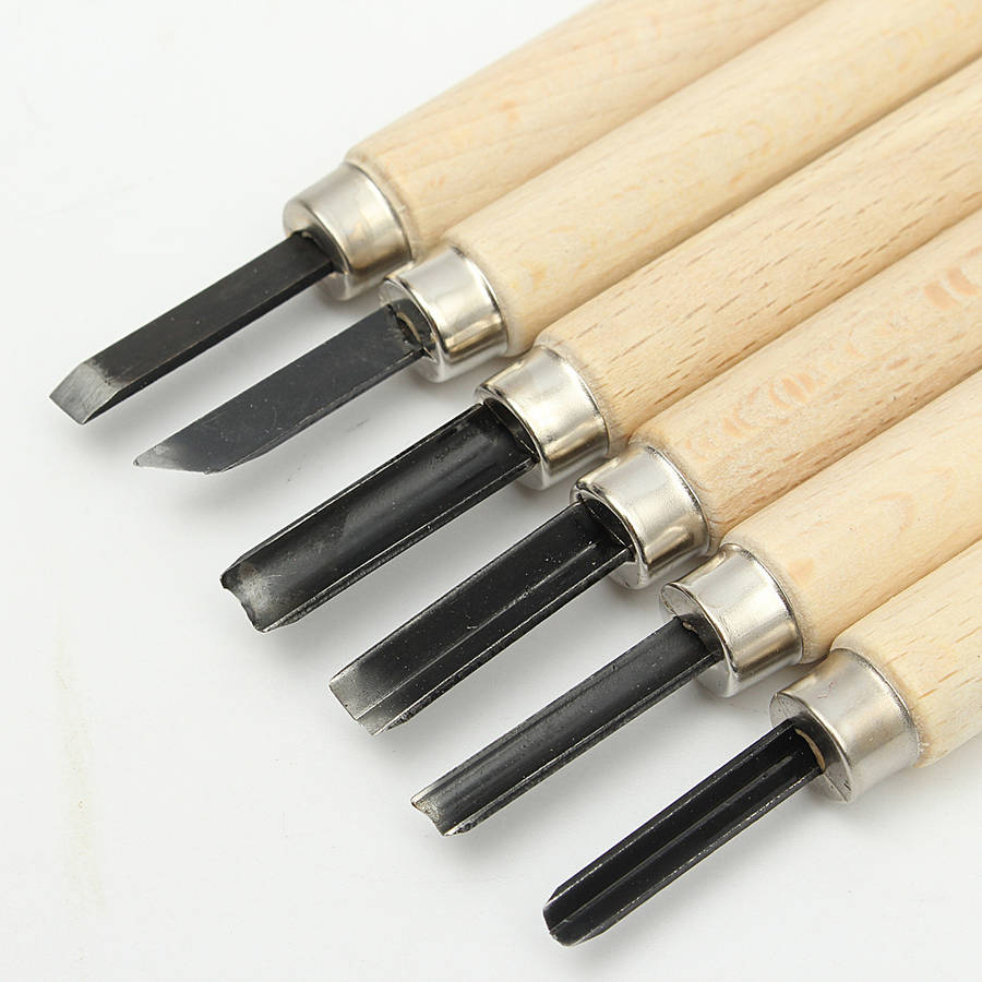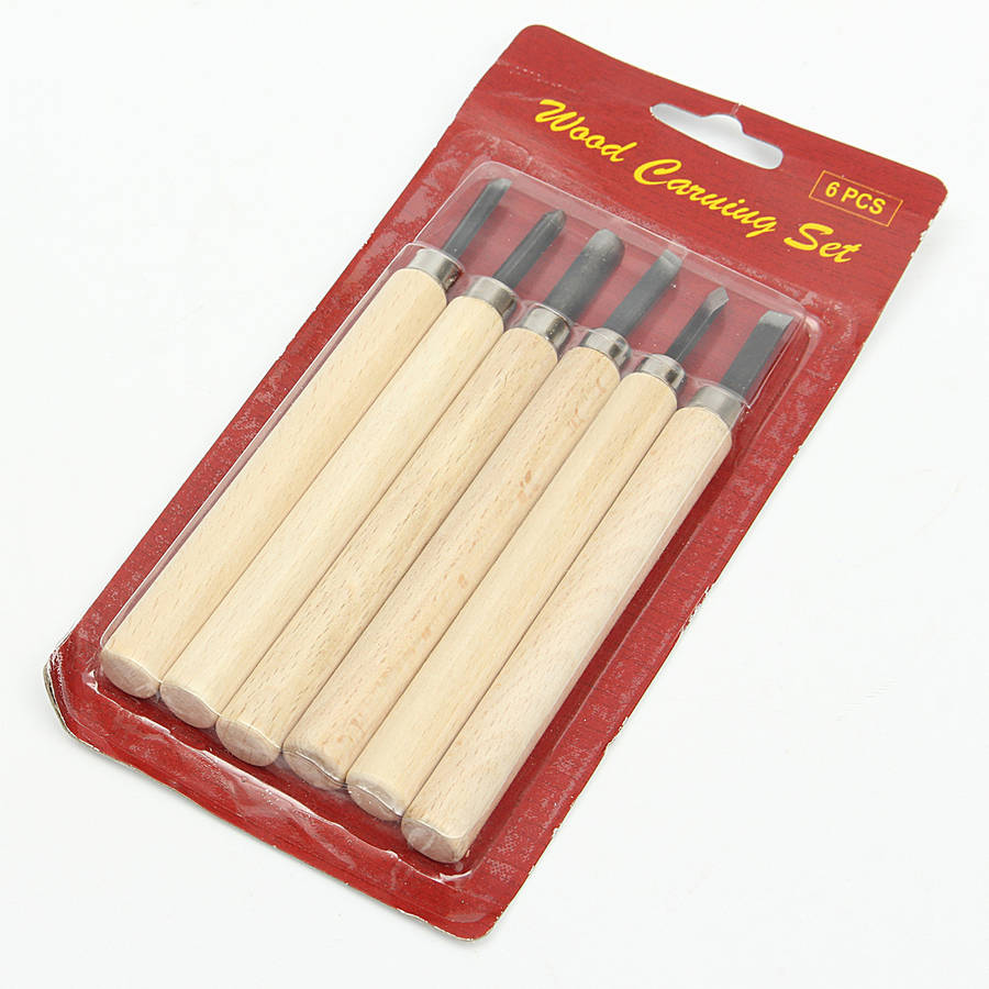 6Pcs Wooden Handle Wood Carving Carvers Working Spoon Chisel Hand Tools Set
