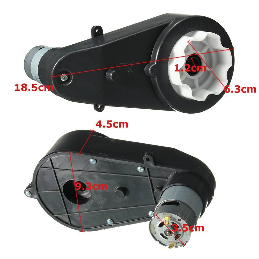 Package weight: 0.17 kg 6V Kid Ride on Electric Car Bike Toy Rear Motor Complete Gear Box Part Replace Description: 100% Brand new and high quality. 6V-550 drive motor gearbox for Rear-wheel drive( for six Plum ) Kids electric car Rear Motor Gear Box Special Use Part Spare Part Replacement Used in cars, remote control cars and motorcycles, ATV, karting, Childs vehicles and other modifications. Model: 550 Motor Specifications: Material: Metal + plastic Voltage: 6V Speed: 18000 Turn Length about: 18.5cm/7.28" Width about: 9.3cm/3.66" Diameter: 6.3cm/2.48" Inner diameter: 1.2cm/0.47" Package Included: 1 x Motor Gear Box