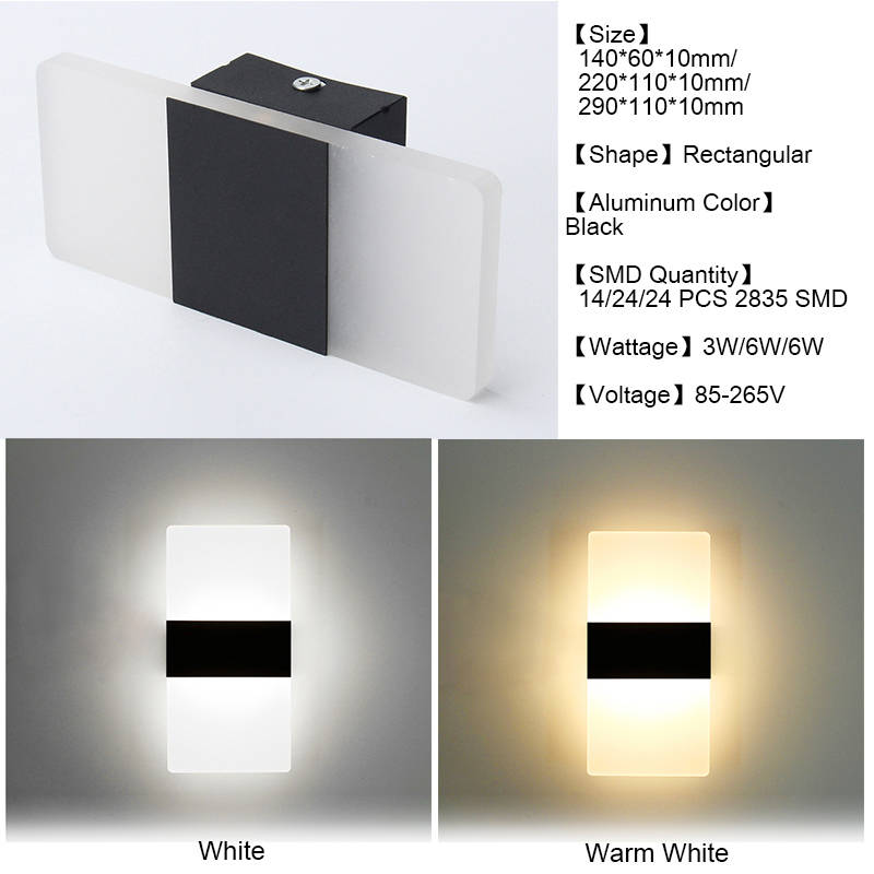 6W Modern Acrylic LED Wall Light Living Room Bedroom Beds... (COLOR: WARMWHITE | SHELL COLOR: BLACK)