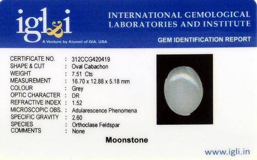 7.51 Ct Certified Oval Cabochon Moonstone Gemstone