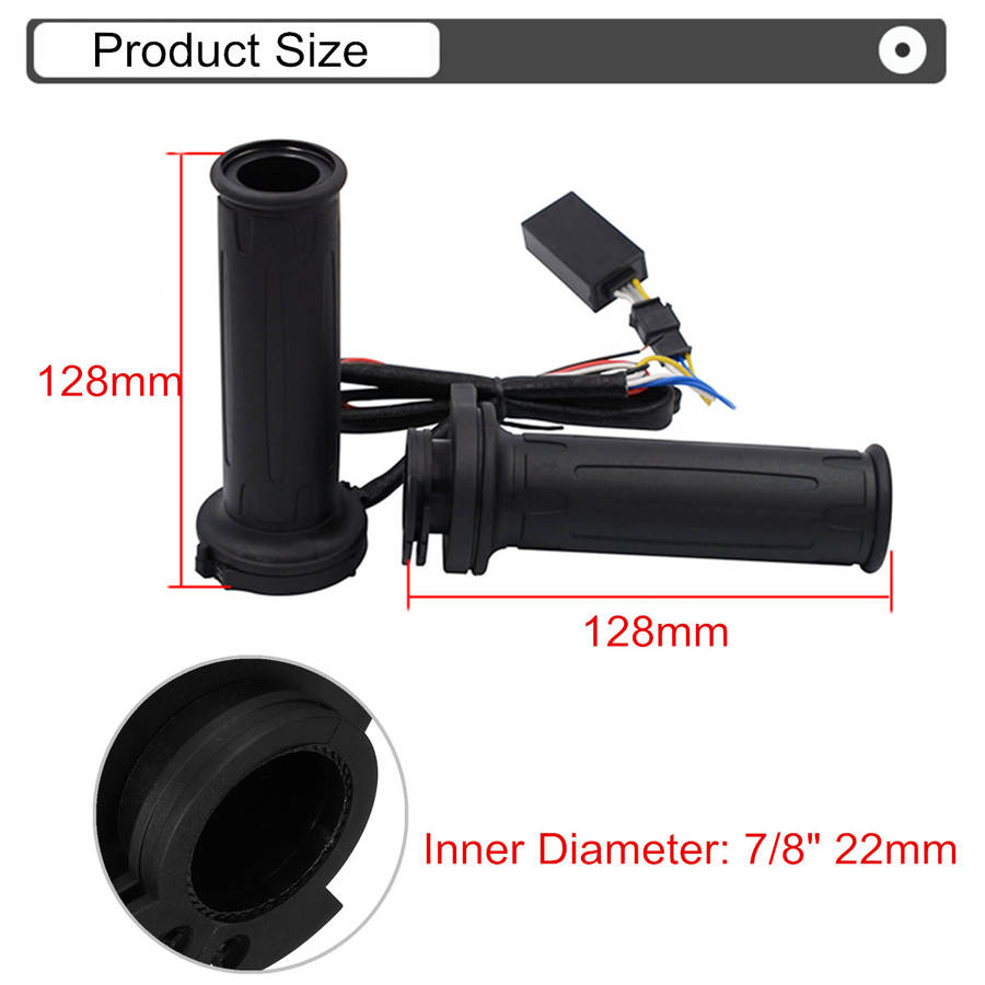 Specification: Color: Black Material: ABS(Acrylonitrile Butadiene Styrene) Length: Approx. 128mm/3.94'' Inner diameter: 22mm/(7/8" Handbars) Min Temp: 50??br />Max Temp: 70??br />Voltage: 12V Power: 12W-24W (Adjustable) Low Battery Drain: 2A Handle Resistance Value: Between 10-12 ohms Working Voltage: Between 12-16V