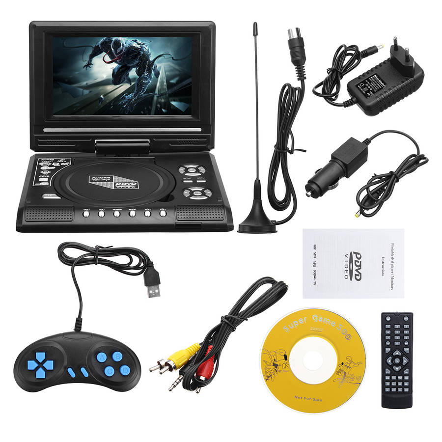 Package Included: 1 X DVD Player 1 X Game Joystick 1 X Remote Control(Need 2 x AAA battery, not included) 1 X AV Cable 1 X Charger 1 X Antenna Cable 1 X Car Charger 1 X User Manual