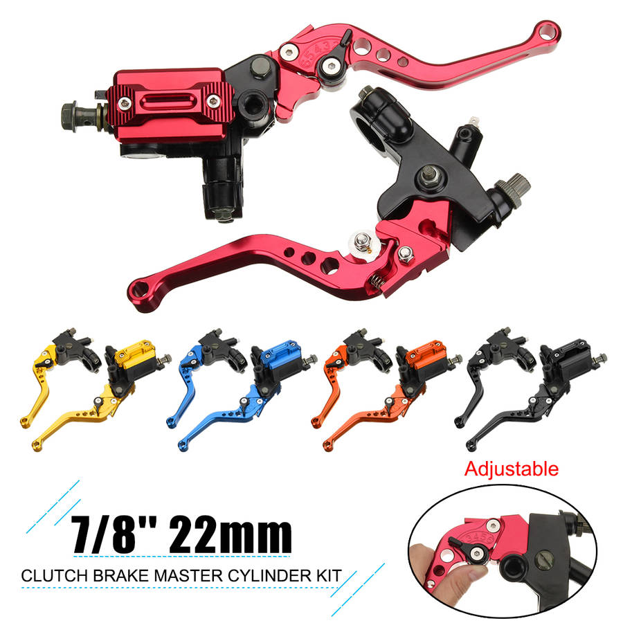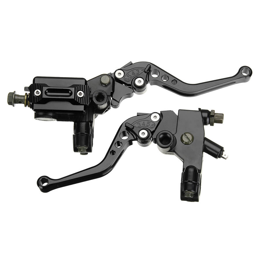 5.Universal Standard 7/8" (22mm) Front Brake Master Cylinder & Cable Clutch Perch with Adjustable Levers and Fluid Reservoir Full Kit