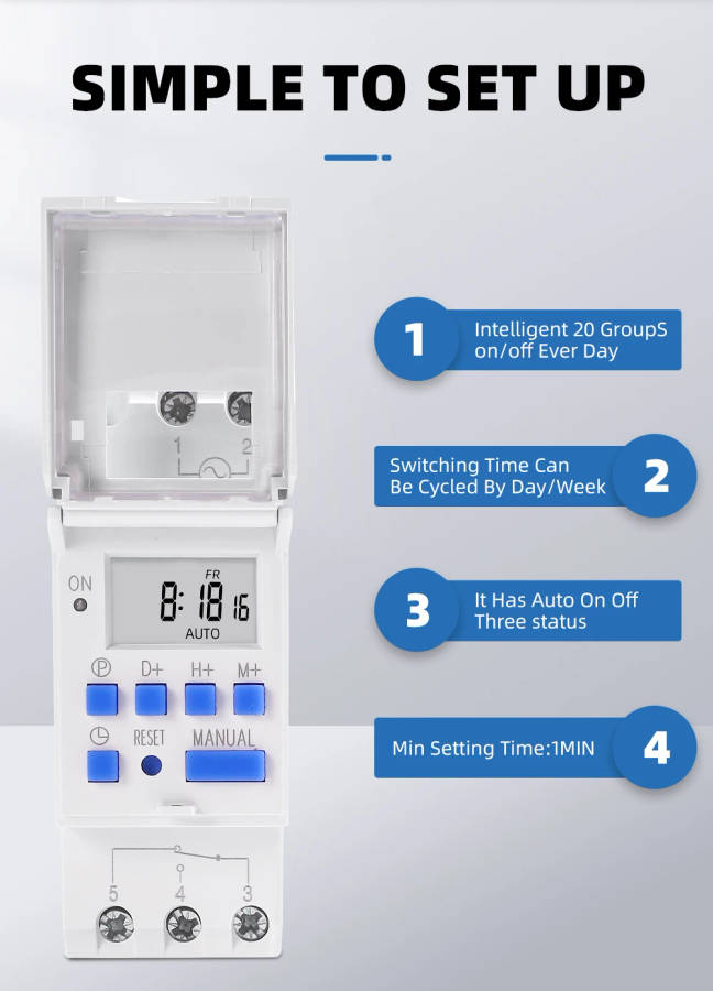 1. Minimum programmable time : 1 minute 2. Maximum programmable time : 168 hours