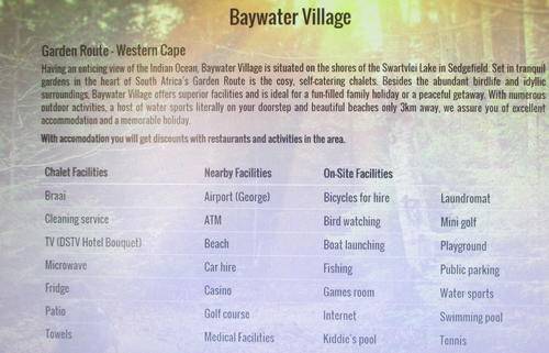 7 Days accommodation at Baywater resort Sedgefield 15th April 2016 to 22nd April. See below for details.I have sold a number of these weeks so buy with confidence