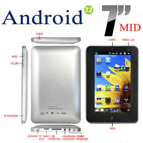 7" tablet PC Google android 2.2 touch screen + WiFi + Cam + Built-in Speaker 256MB 2GB pocket/travel computer. Free Screen Protector.