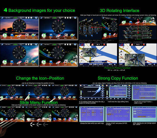- 3D Rotating Screen Menu, it will show 3D Interface while change the screen menu