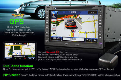 - Dual zone function support, Rear Passengers can watch DVD or TV while driver can use GPS