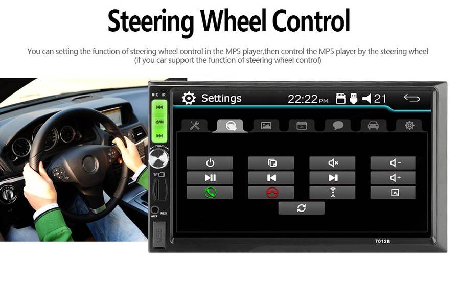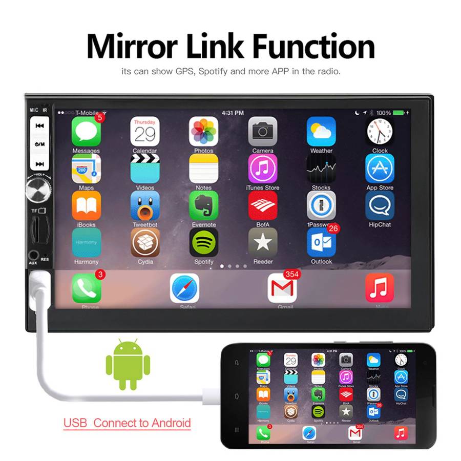 -Touchable Screen, FM,Built-In Microphone, Steering Control, Support 1080P Video Play,Bluetooth,Hands-free,Mirror Link Screen,Radio,Audio,MP4, MP5.