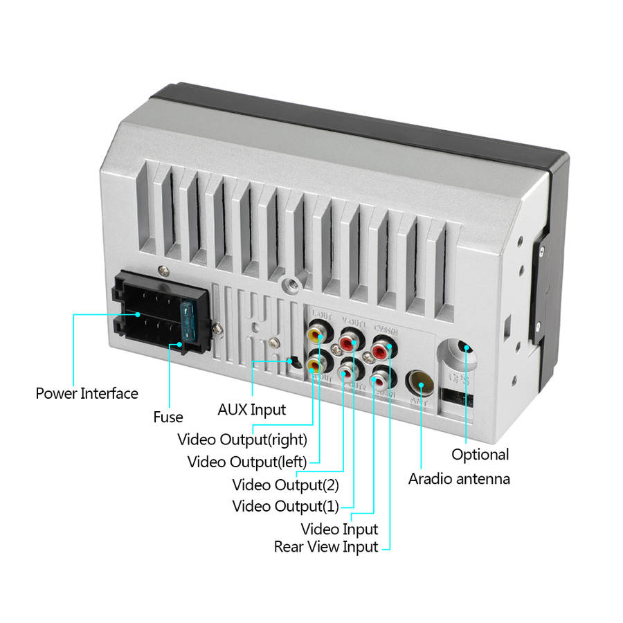 -AUX audio input interface External audio input such as MP3, GPS, mobile phone, Walkman.