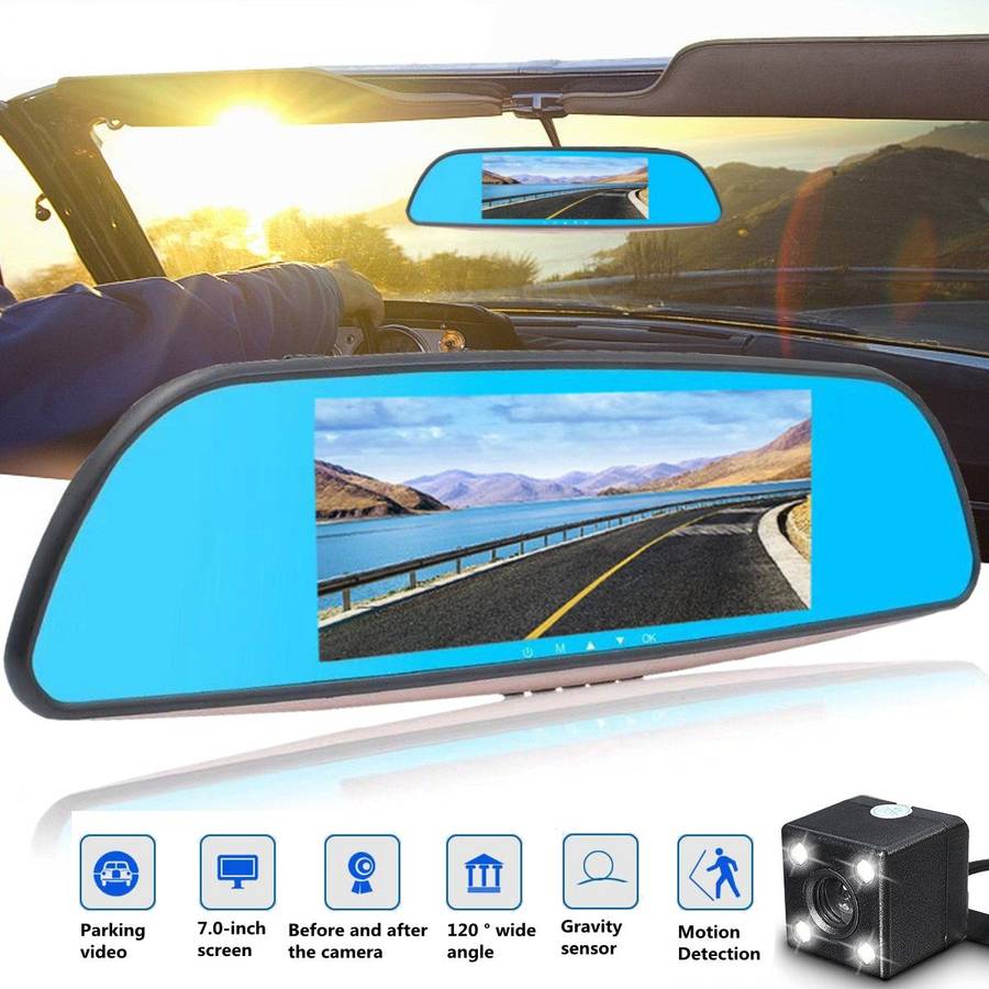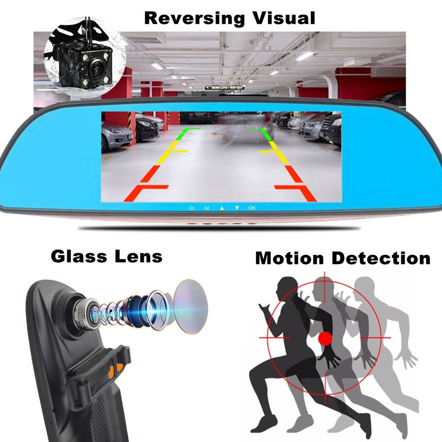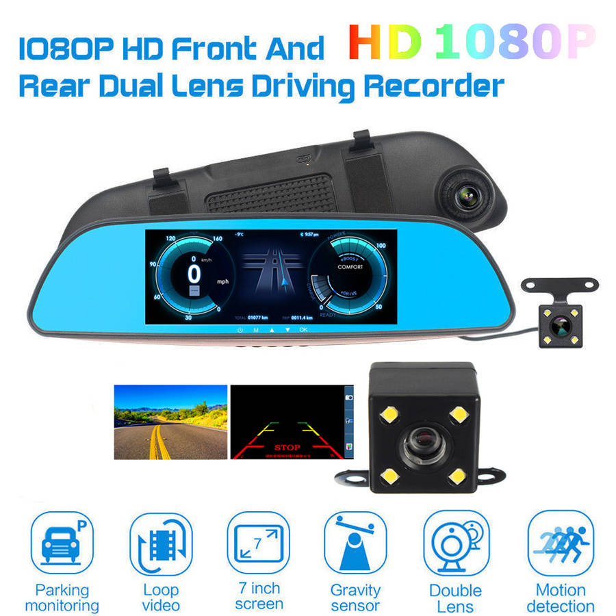 7 Inch 1080P Dual Lens Car DVR Dash Cam Rearview Mirror Video Camera Recorder