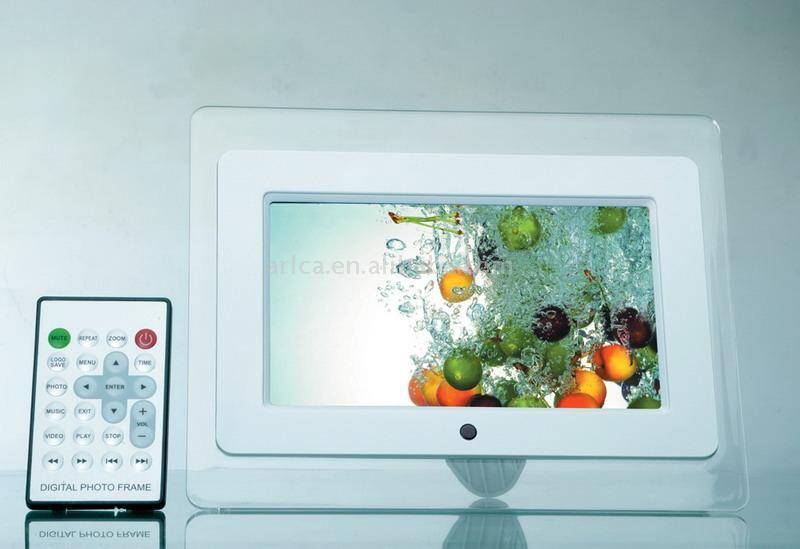 Product Name: 7" Digital Photo FrameModel Number: DP7058APlace of Origin: China1) Screen Dimension: 7 inches2) Resolution: 480*2343) Brightness: 300cd/centiare4) Contrast: 150:15) Viewing Angel: 45 degrees left or right, 40 Degrees up down6) Built-in 2-CH stereo speakers7) Files supported: JPEG/MPEG1/MPEG2/MPEG3/MPEG4/AVI/DIVX8) Memory Card Format: CF, MS, SD, MMC card support, USB9) USB Interface,and earphone connection10) Slide show, repeat playback, play background music11) Built-in 8M flash,6 Pictures in one view12) Video output(CVBS): Can show digital photo on TV13) Audio Output(stereo): Can connect with speakers14) With Zoom In/Out Function