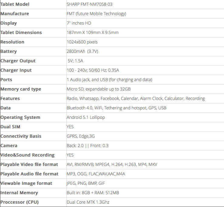 Dual Sim, Surf the web (embedded 3G internet), Wifi, Bluetooth, Satellite GPS, Dual Core Processor, 8GB on-board storage, 7" Multi-touch screen, Wifi Hotspot feature, 2mp Camera... check email, watch movies, play games, listen to music, read, write, and more.