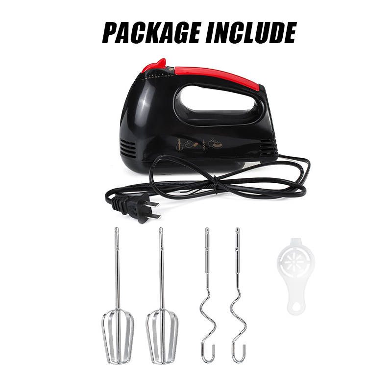 Function: Beat eggs, butter Placement: Handheld Gear position: 7 speed Voltage: 220V Color: Black Size: 180*70*115mm/7.1*4.5*2.8in