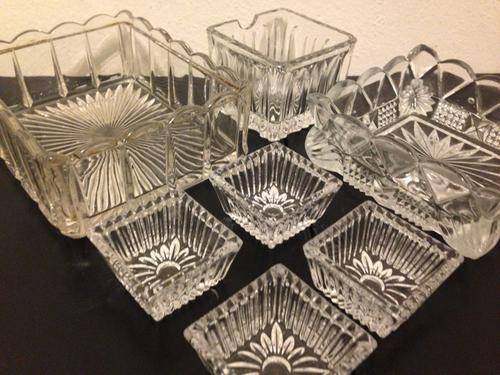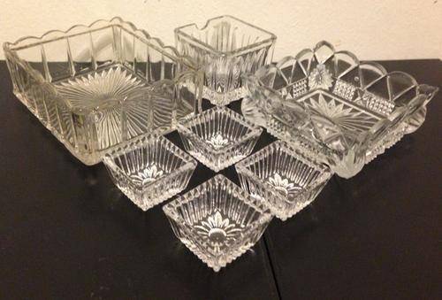Largests bowl measures 133mm x 114mm x 53mm high. Perfect to serve side dishes, salads and pickles. Some nice display pieces.