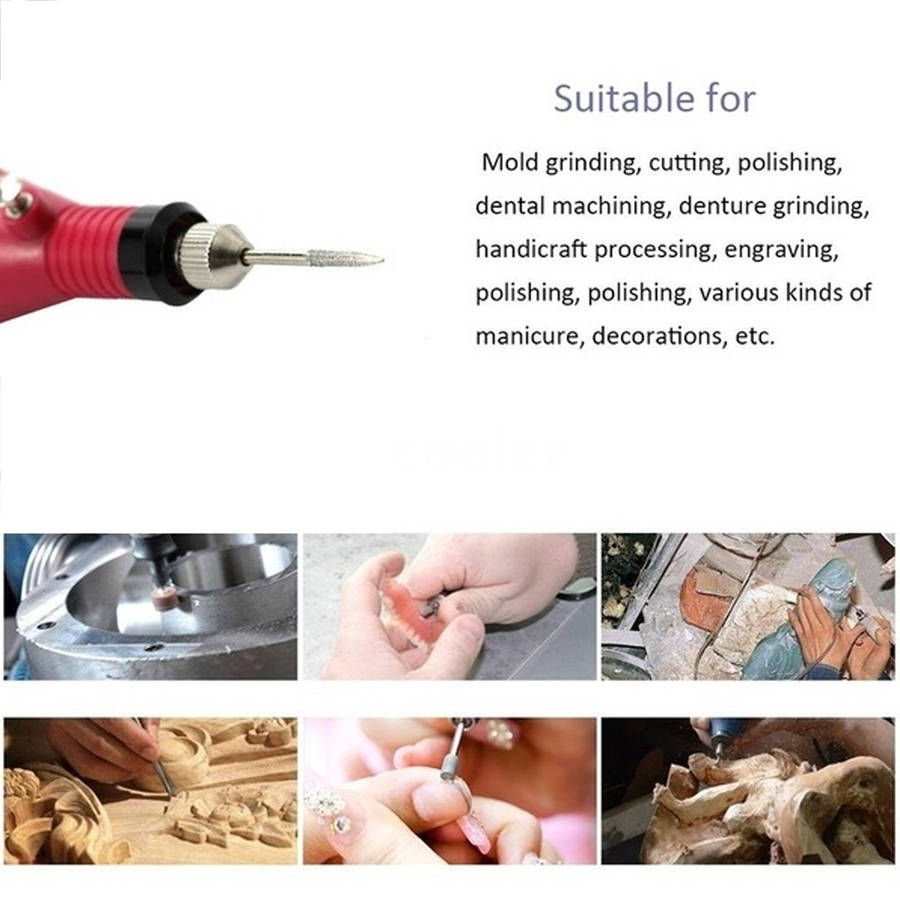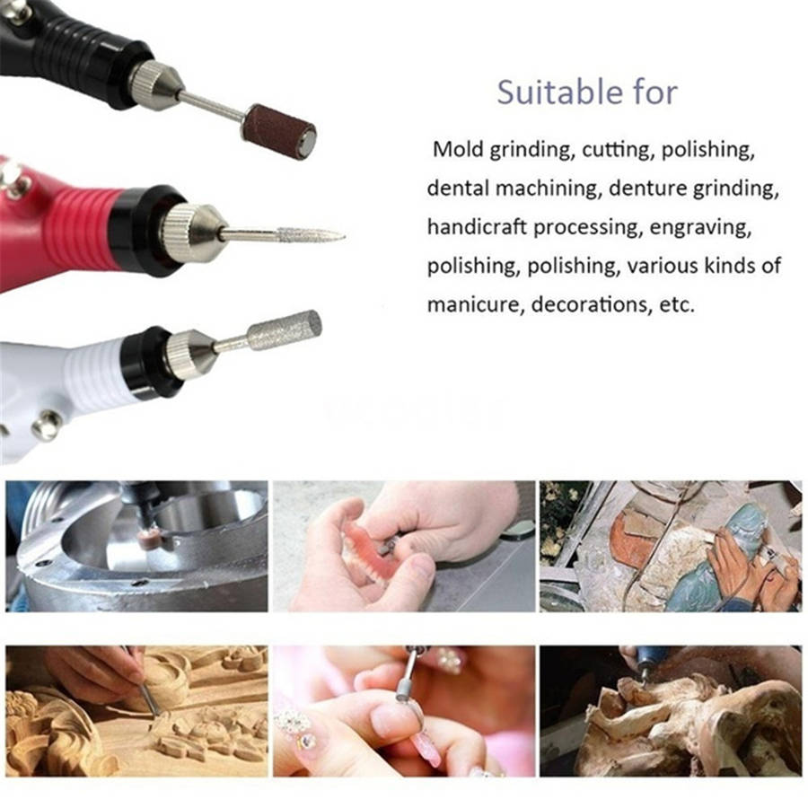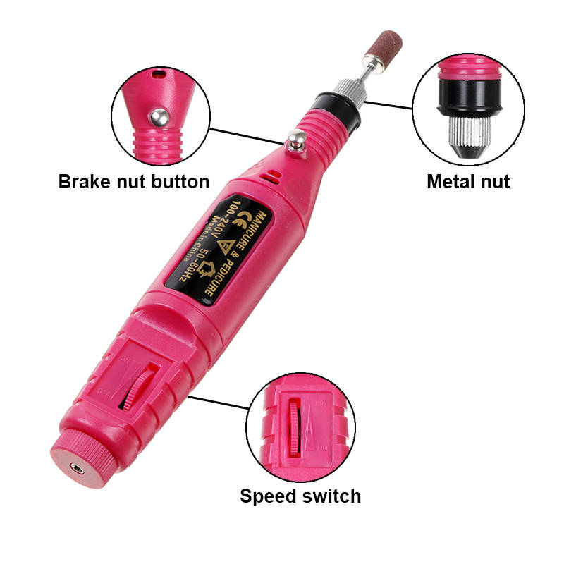 Specifications: - Mini Nail Electric Drill Set - Light Weight and Portable - Variable speed control: 3000 RPM up to 20,000 RPM - Voltage: 220V(EU) 110V(US) 50/60HZ - Multi Usage: carving, engraving, routing, grinding, sharpening, sanding, polishing, drilling and so on - Color: Rose Red