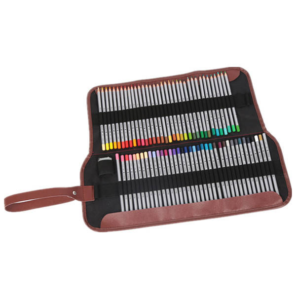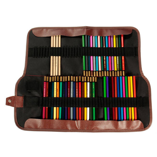 72 Hole Roll-Up Pencils Wrap Case Canvas Leather Sketch Holder Artist Organizer