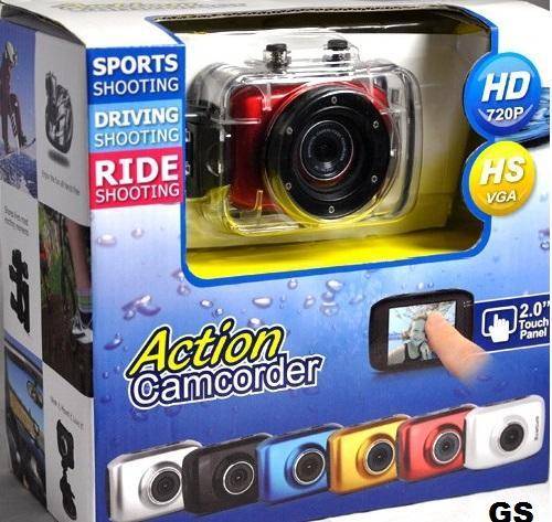 720P HD mini action camcorder 2.0 inch TFT LCD preview screen and resistive touch screen for convenient operation. Adopts CMOS image sensor. Suitable for mount on bike, surfboard, helmet, camping, skydiving etc. captures video and photo and records 720P HD videos. Removable Micro SD/TF card for easy transfer and viewing on any computer. Powered by built-in rechargeable battery!
