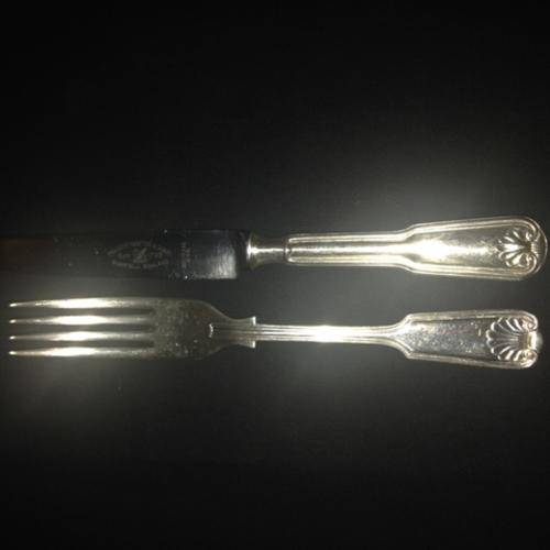 Beautiful old Sheffield England silver plated and stainless steel cutlery with Fiddle thread and shell design. Forks is marked EPNS A1 Sheffield England and the knives is marked Francis Newton & Sons - Sheffield England Stainless Steel.