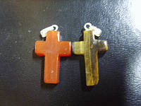 2 SEMI-PRECIOUS CROSS PENDANTS, TYPES MAY DIFFER,