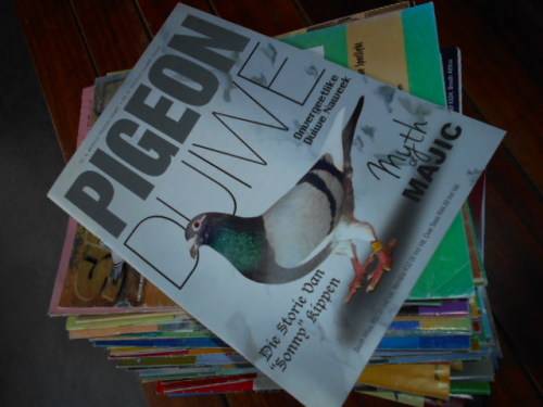 Official organ of the South African Homing Union - 76 Pigeon Magazines/Reisies/wedvlugduiwe Tydskrifte in English/Afrikaans - almal in redelike goeie tweedehandse kondisie, goed gebind met duidelike skrif/ All mags in a good secondhand condition well binded and readable.