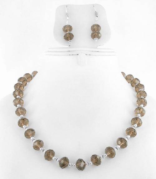 78 Gm Smoky Quartz Gemstone Beaded Necklace with Matching Earrings