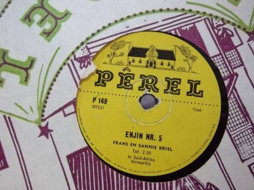 78 rpm record - Trein na Pretoria backed by Enjin Nr. 5 by Frans en Sannie Briel. Perel label with original Perel sleeve. Very good condition considering the age, no major scratches. Postage in SA - R45 SAPO or R99 Postnet to Postnet.
