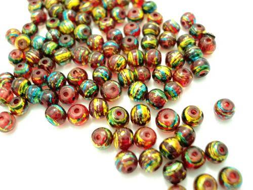 50 Splashed Glass Beads - 8mm