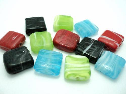 12 Square Glass Beads - 15x15mm
