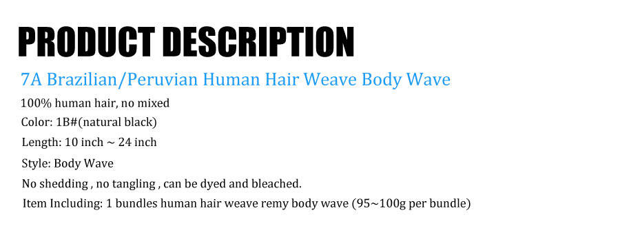 7A(market 10A above) Brazilian/Peruvian Human Hair Body Wave 10"~24" 100g 1B# [one bundle only]