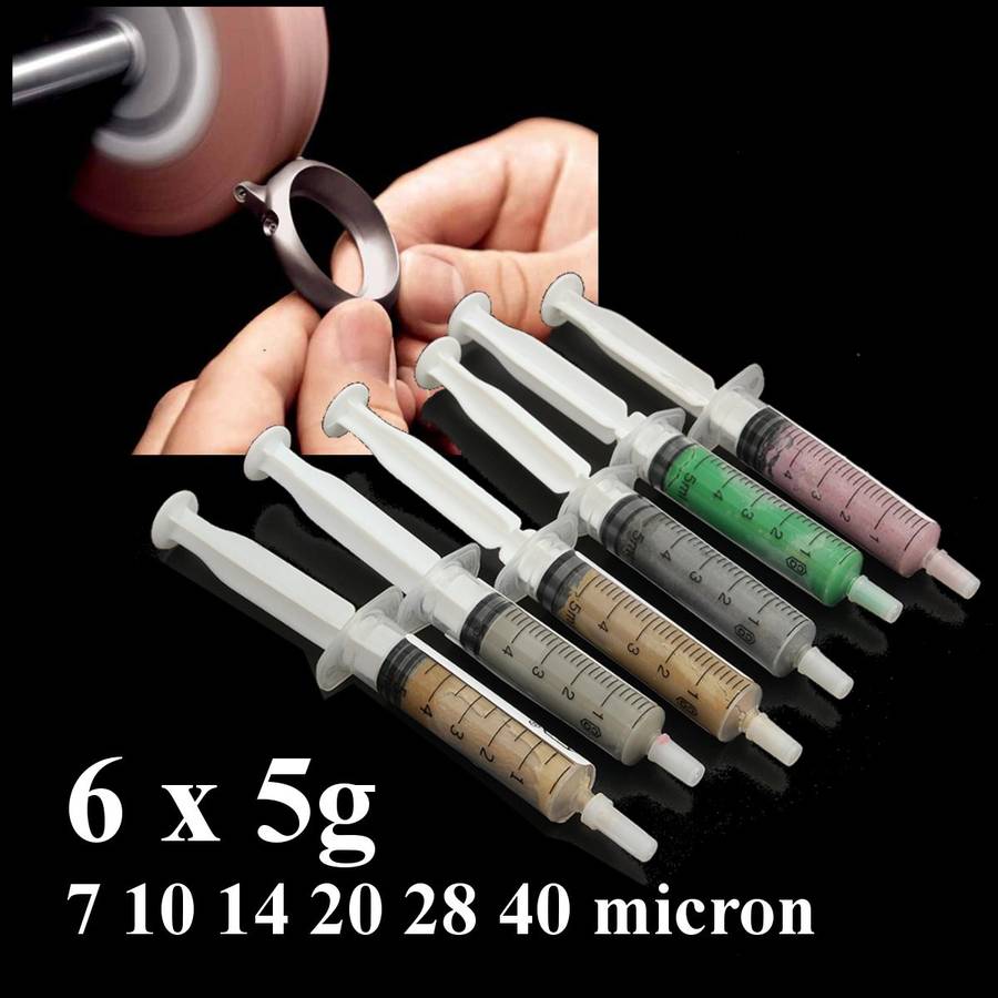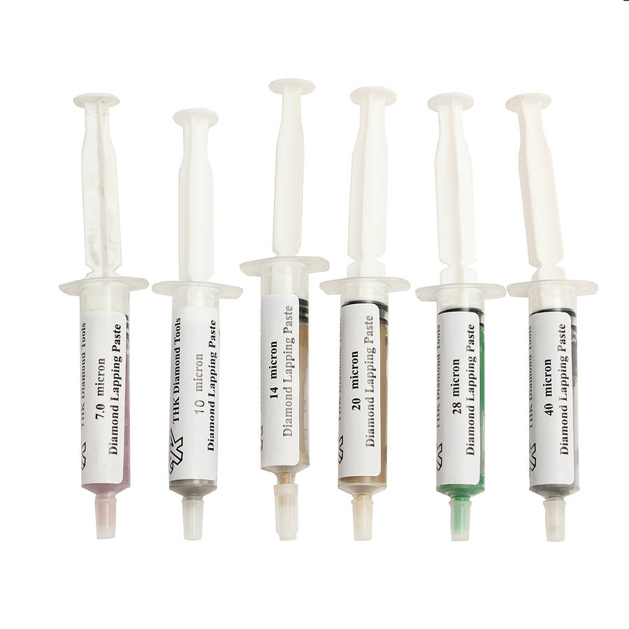 Package weight: 0.04 kg Description Material: Diamond Type: oil soluble grinding paste Grit Sizes: 7, 10, 14, 20, 28,40 micron Features: 1.Oil based, easy to use. 2.Environment friendly, made with resin, wax and diamond sands. 3.For best results, use with felt bobs or wool polishers. 4.Ideal for jewellery, gemstones, steel, hard metals, aluminum, zinc and for most metallurgical applications. Package Include: 1pcs 7micron Compound Mold Polishing Tool 1pcs 10micron Compound Mold Polishing Tool 1pcs 14micron Compound Mold Polishing Tool 1pcs 20micron Compound Mold Polishing Tool 1pcs 28micron Compound Mold Polishing Tool 1pcs 40micron Compound Mold Polishing Tool How to use: 1. According to the requirements of the processed workpiece roughness, choose the appropriate grinding paste. 2. Grinding, will be a small grinding paste into a container or directly into the grinding device, 3. Evenly distributed with the right amount of water and glycerin thin,fit for mechanical or manual grinding.