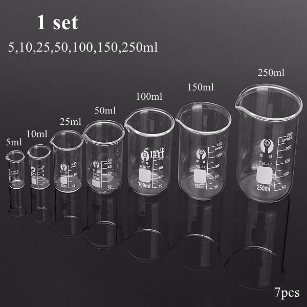 7Pcs Borosilicate Glass Beaker Container Volumetric Glassware For Laboratory