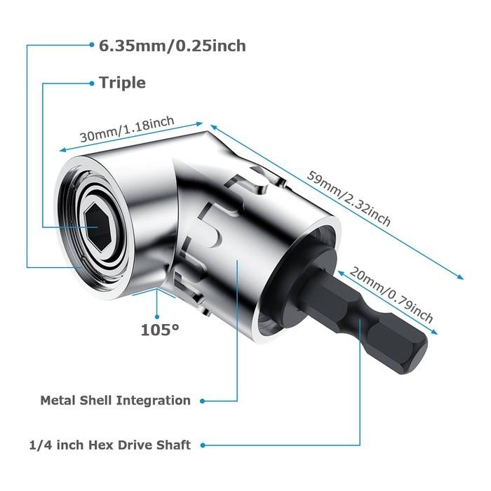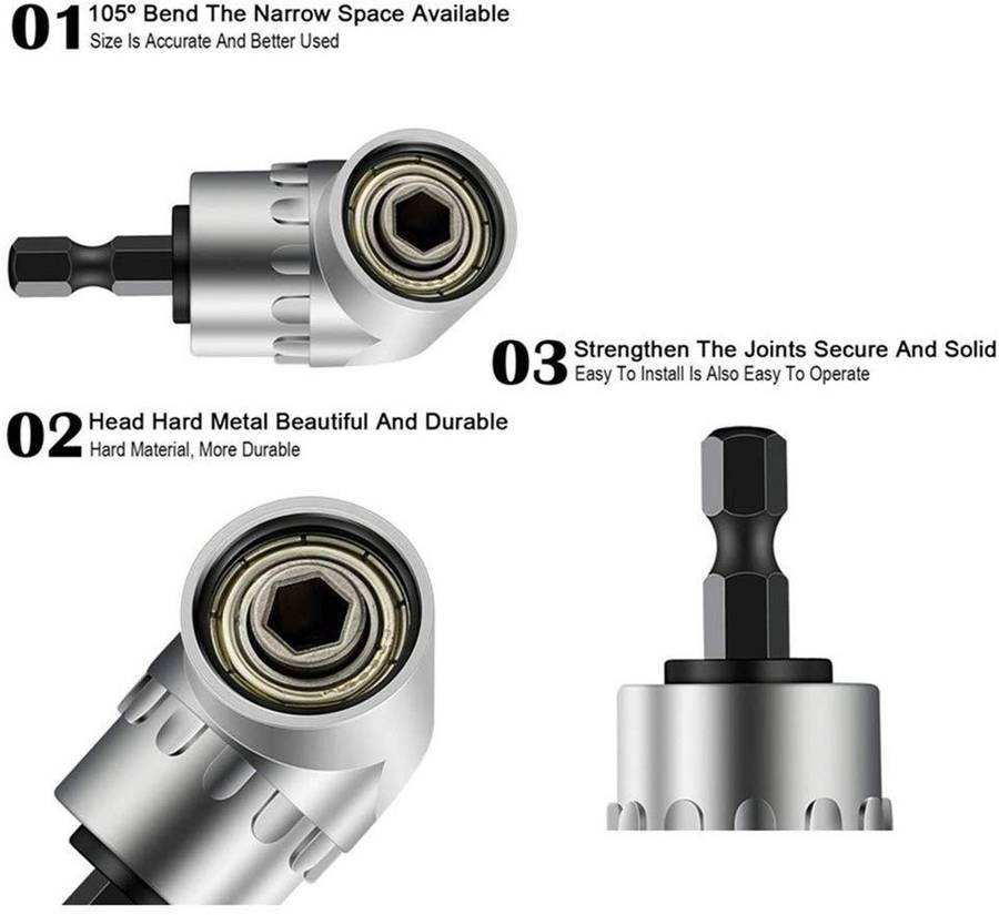 - Application: 105°Angle 1/4 inch Hex Drill Bit Screwdriver Socket Holder Adaptor,which is quick change compatible and fits most power drill, rechargeable drill, manual wrench and driver chucks