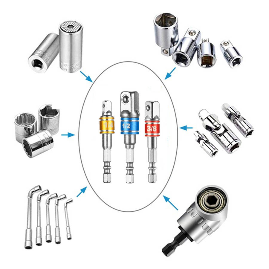 - Application: 1/4 Inch Hex Shank Magnetic Extension Chuck Adapter Quick Release Bar Socket Screwdriver Bit Holder | 60mm/ 100mm/ 150mm Length,Suitable for electric, pneumatic screwdrivers and other screwdriver bits of power tools, drill extended. 3Pcs Colorful Socket adapter impact set - 1/4" drive adapter, 3/8" drive adapter, and 1/2" drive adapter and each with a 1/4 inch hex shank driver socket adapter set .Connect impact sockets/socket wrenches/sockets bits/driver sockets to power cordless