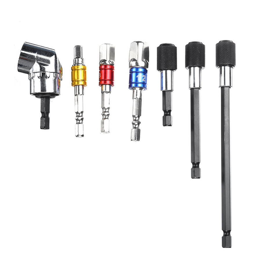 - Package Content: 3Pcs 1/4 Hex Shank Socket Adapter Impact Set Square Nut Driver Drill Bit 1/4" 3/8" 1/2" + 3 Pcs 1/4 Inch Hex Shank Screwdriver Bit Holder 2" 4" 6" Extension Set + 105 Degree Right Angle Driver Angle Extension Power Screwdriver Drill Attachment.
