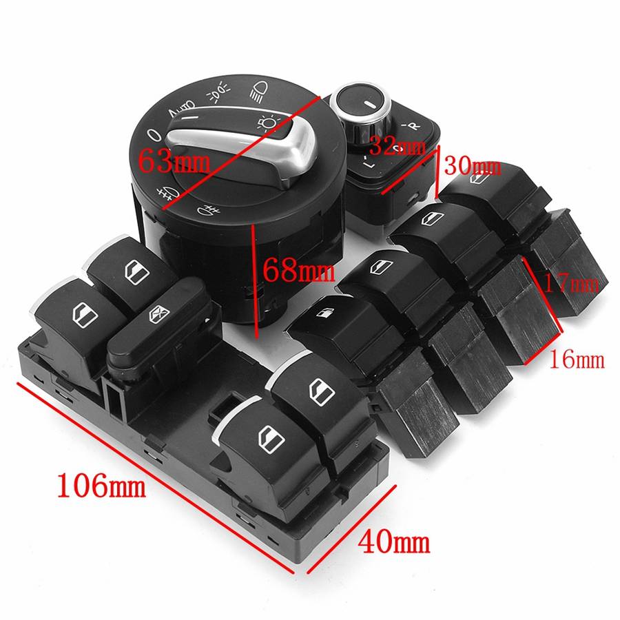 | Product | 7Pcs Master Window Headlamp Window Fuel Gas Car Switch Kit For VW Golf MK5 MK6 Jetta Passat |