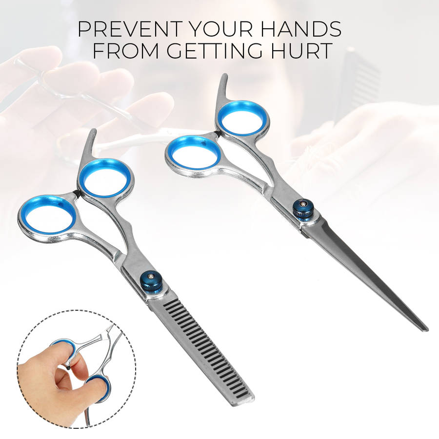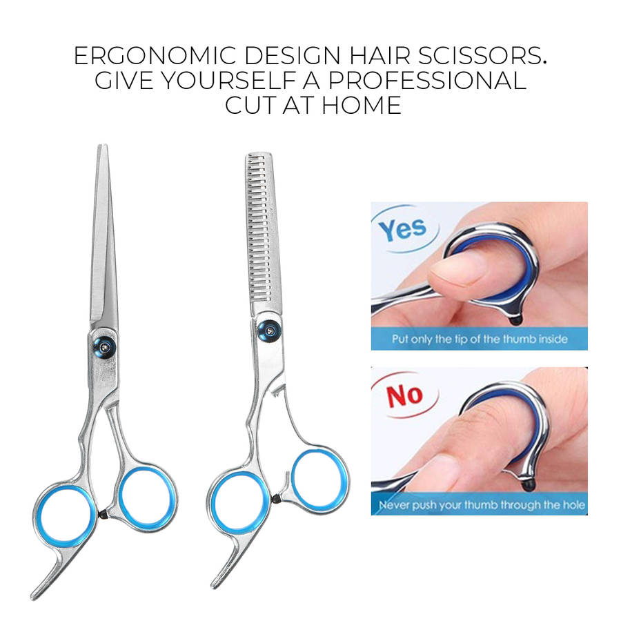 The hair cutting scissors is safe and easy to use on men, women, the elderly, ladies, small children, babies, kids, dogs and other pets. Perfect for home and primary barber, great for thinning thick hair, DIY haircut or hairdressing use