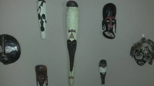 We have 7x African masks for sale mainly Congo,Zanziibar ,and east and west Africa .2 of the masks are very old maily the one with the braids and the circular mask . These have been with us for the last 15 years and we have decided to re decorate . The masks are way below value .Can be collected or contact us for courier fees .