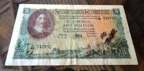 8/3/56 SOUTH AFRICA 5 POUND NOTE